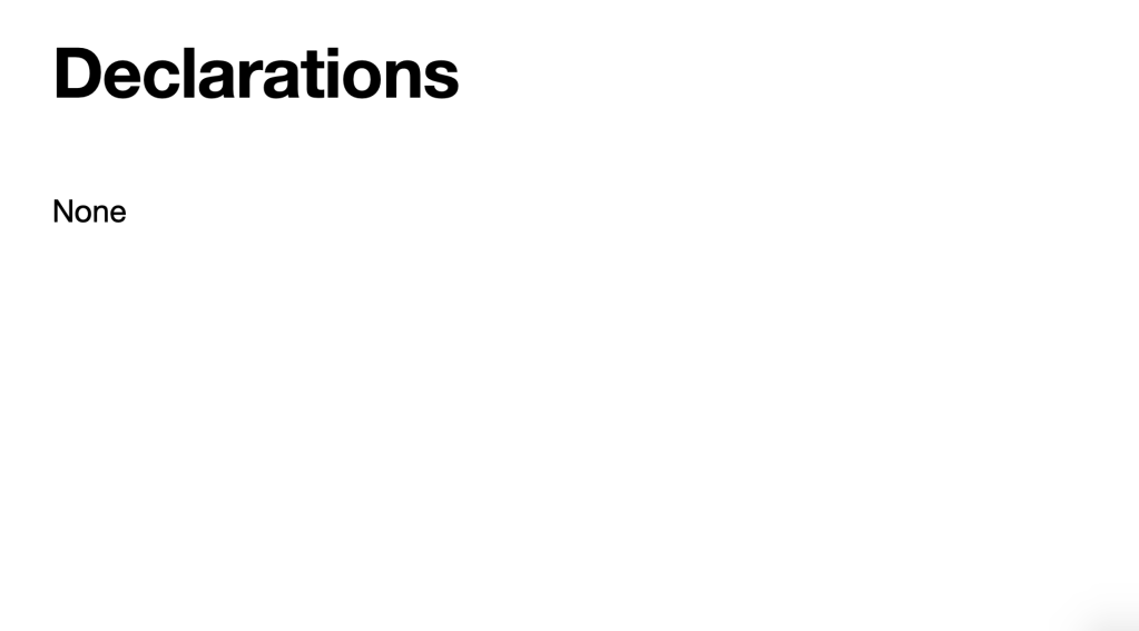 I have no declarations, financial or otherwise. We’ll come onto that in a bit more detail later.